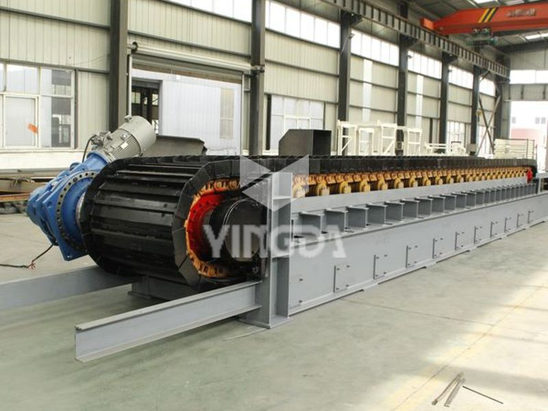 3、驅(qū)動(dòng):電機(jī)可采用調(diào)速電機(jī),運(yùn)行速度可調(diào),可以手動(dòng)控制緩慢加速或減速,速度在0.3~0.5m/min使用較多并穩(wěn)定運(yùn)行,以便更合理地選擇輸送量;